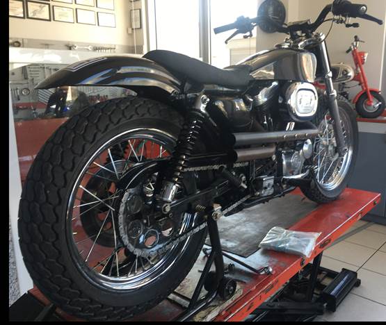 Tony Kontaris from the town Varkiza in Greece has achieved something very nice. I see lots of bikes and very few hit the perfect mark. I’m not crazy about all black bikes but this doesn’t matter in Tony’s case. He’s taken my tank in black and blended it with his custom seat and what appears to be a stock fender. Look how he trimmed it. It flows with the bike. Americans would have chopped it off with no grace.