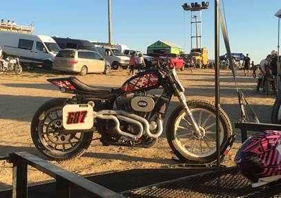 One of the classes almost always offered is the “stock” Sportster class. Most customers who are into this are using 883 and 1200 Evos. They order a front wheel conversion kit from me to use on the rear so they can get flat track tires (which only come in 19”) to handle the dirt tracks. Oh they’ll put on DT bars, bolt on some number plates and pull the silencers but that’s about it. Hooliganism is catching on in California, Inner mountain west, Texas and in the East. Photo by Kiley Yee, parts guy at High Desert H-D in Idaho.