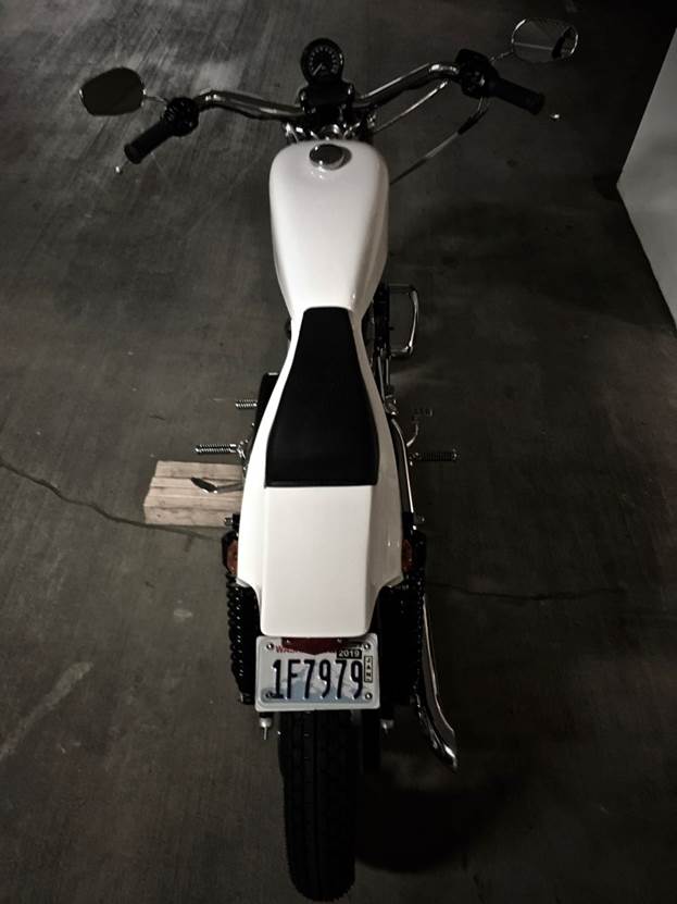 Craig Caldwell from Washington state is building a Hooligan tracker. This conversion can be done for about half the cost of my SXR street tracker. Here you see my Gen I Hooligan tail for square back tanks on Craig’s bike. Everything else is stock without graphics except for the shocks. See how the tail mimics the oil tank lines. It does that to my side cover on the other side, too.