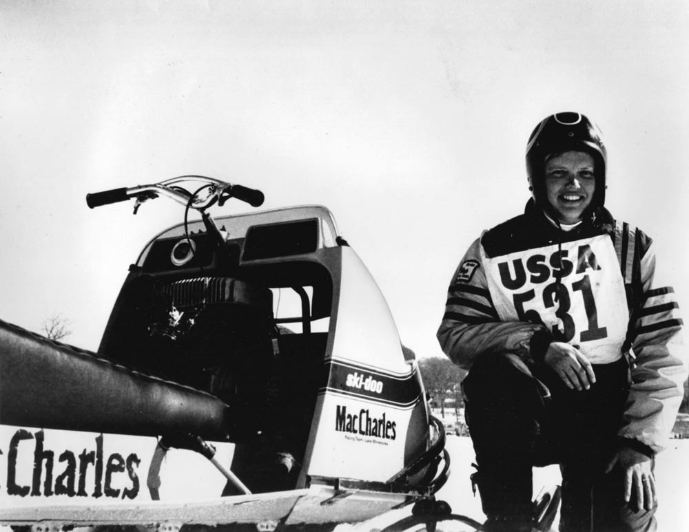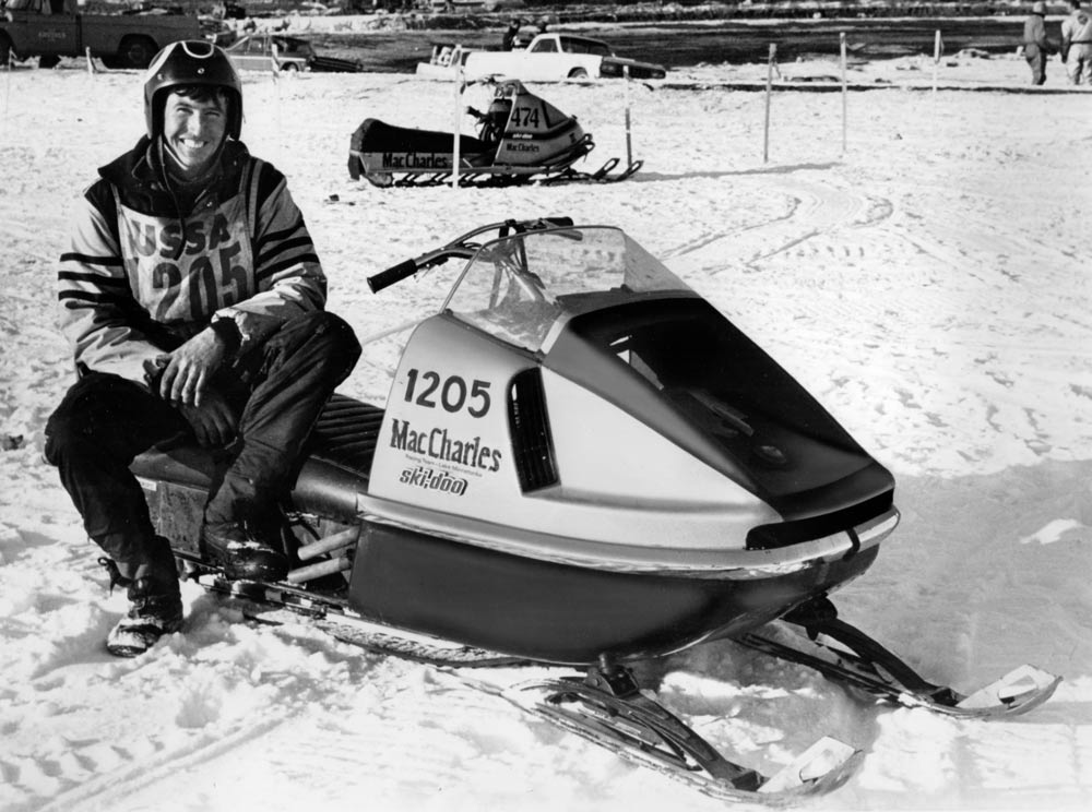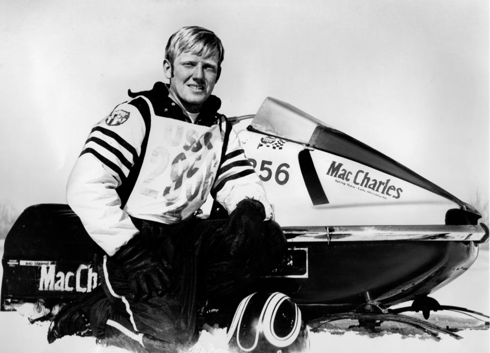 In 1973 at the age of 17 he ignored his mother’s advice and started as an iron worker in his father’s bridge building business. Before Smith married, his earnings supported racing. At age 52, he retired. His leisure hours were spent boating, fishing and building sleds for young racers. Occasionally he still races snowmobiles at age of 61 but picks a few races on a relaxed schedule. 1970 was a perfect time for the MacCharles snowmobile dealership and the racers who joined his orbit.