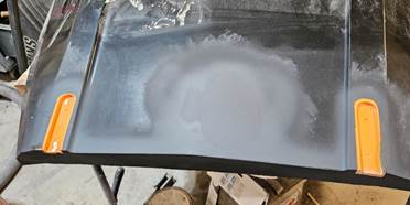 Once it comes back then I can do final prep on hood. So now I attack the nose with vigor.