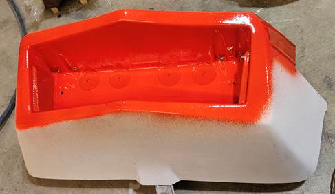 As I said last time, I’m working on the nose because it’s more difficult. The hood is comparitively easy, even though it will take an age. I’ve sanded the nose surface with 400 w/d. I’m doing something new--at least for me. I’m using gelcoat (red) as a primer to fill little imperfections. (My hope is to cut time by bypassing the primer stage.) Then I get to sand some more so everything comes out smoothly, followed by polishing. More when I have reportable news.
