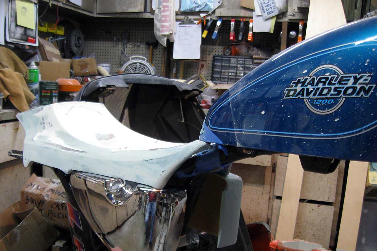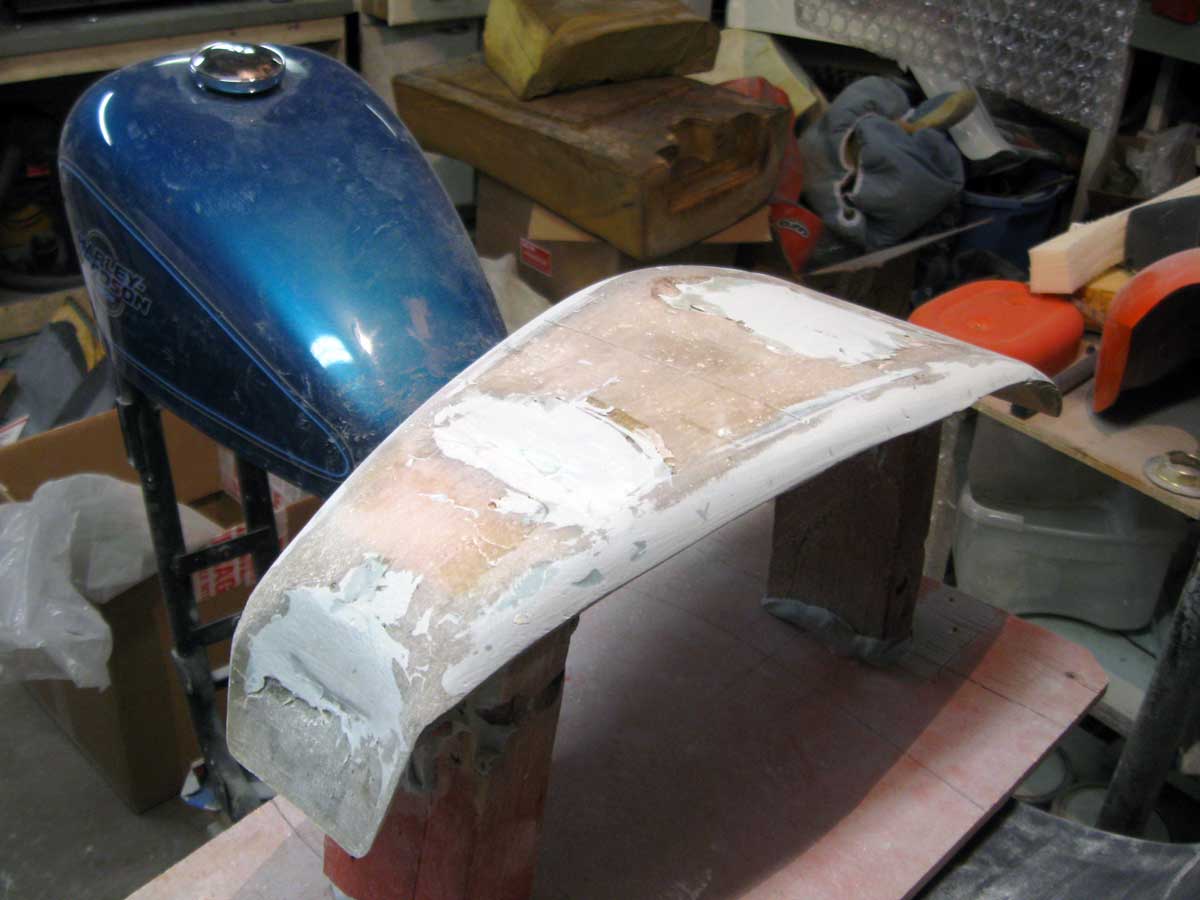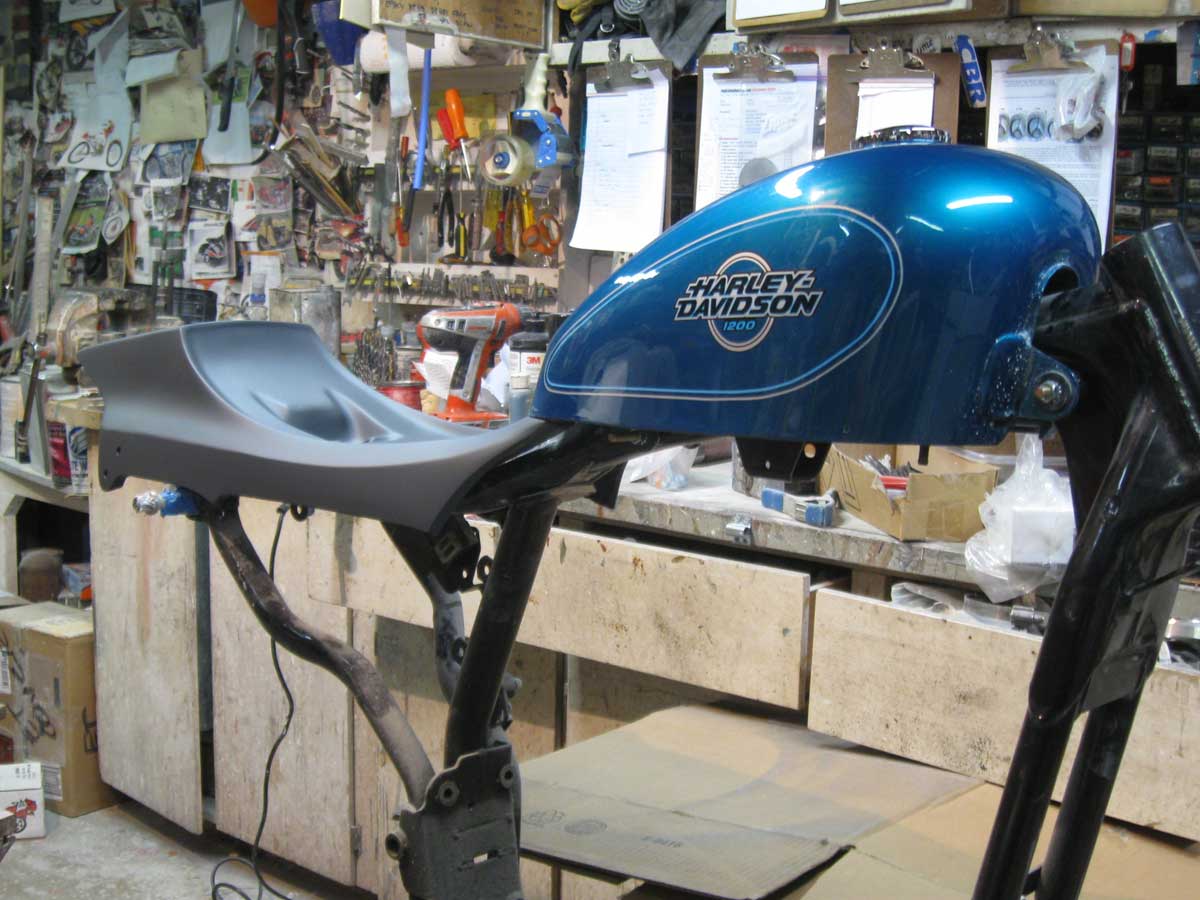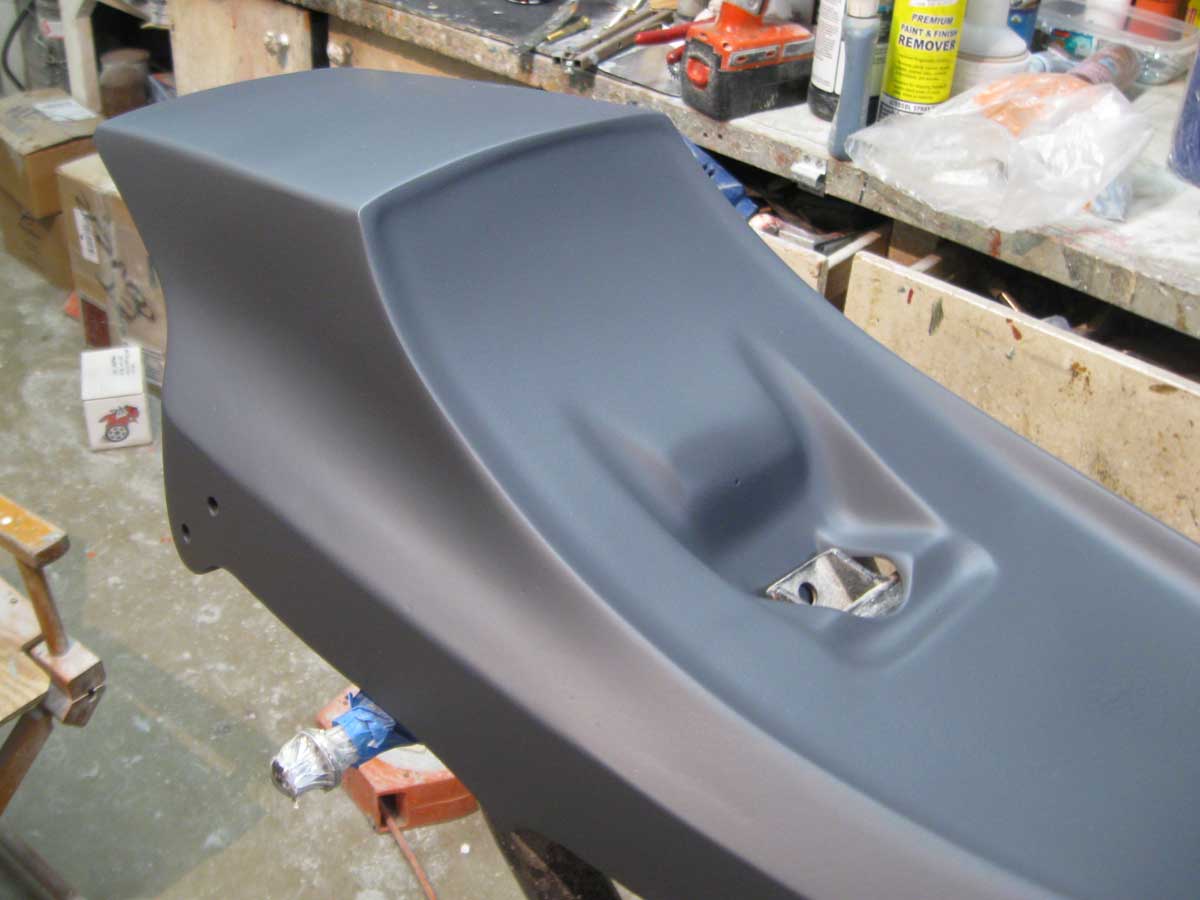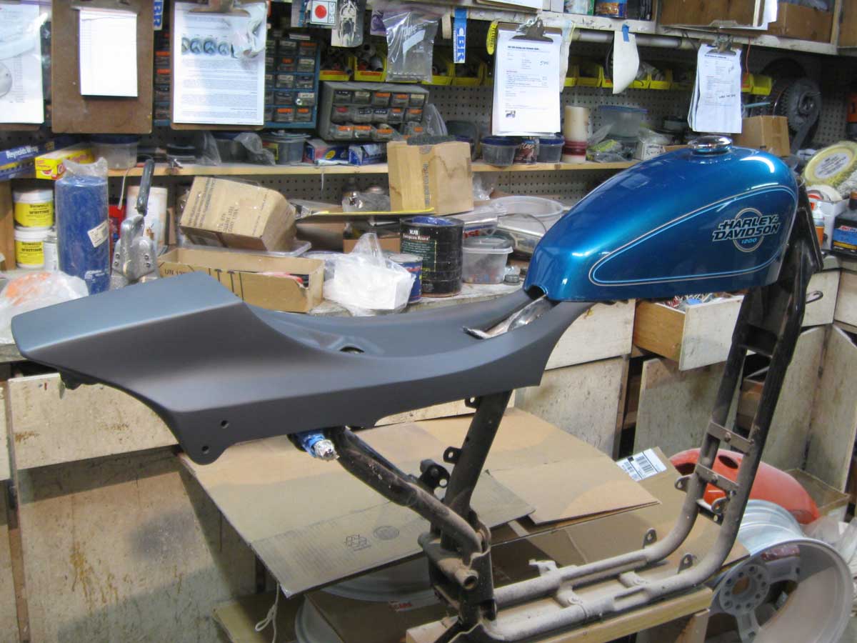 The DXR tail is pretty much roughed out as is the new battery side cover. I have finish work to do and the license plate/taillight mount to make. This will be part of the tail not a separate piece. I can do that by making a 2-part mould. I will report more when I have it.