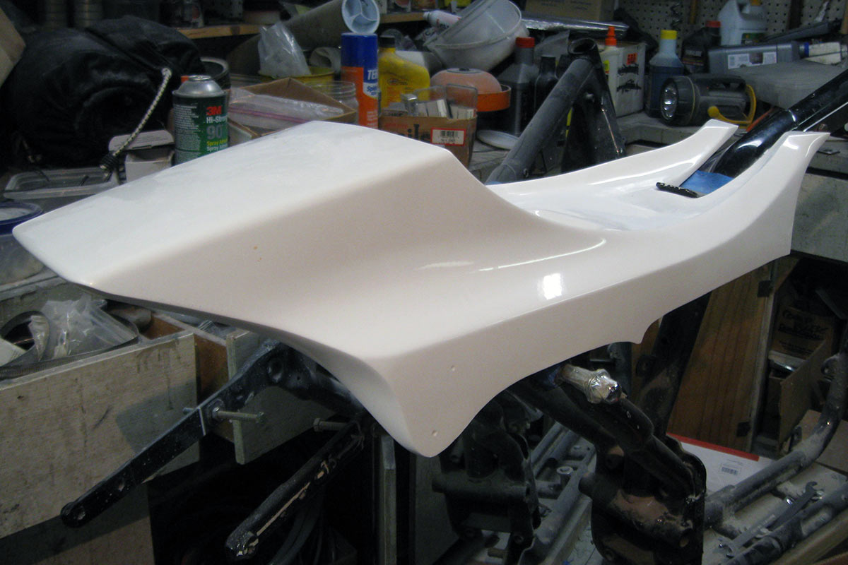 Remaining work: Make a mold for the seat foam and make a mold for taillight/license plate holder which bonds under tail then I'm done after a year.