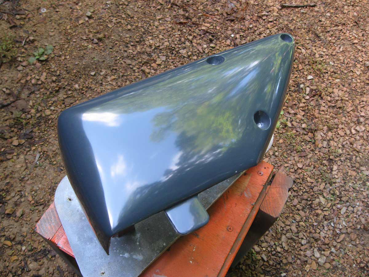 Today I can show you the competed tail part, first out of the mold. If you are wondering about that scallopy shape on the edge-that’s my attempt to blend the tail with the oil tank. I have one on the other side for my new left side cover-which is quite popular (see two posts back).
